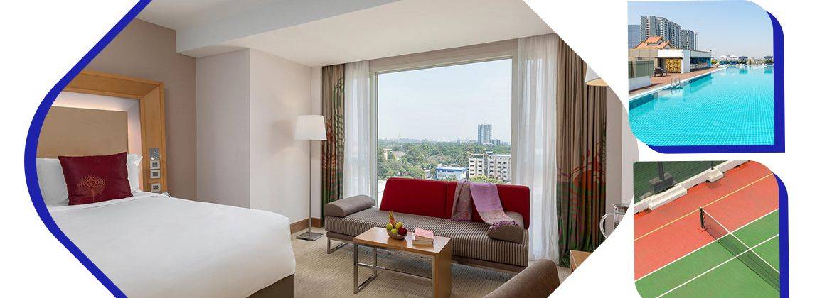 Relax and unwind in our luxurious rooms, where comfort meets style. Dive into our refreshing swimming pool, sip on cool drinks by the poolside bar, and indulge in delicious meals at our restaurants. Book your staycation today and enjoy the most relaxing time with your loved ones!